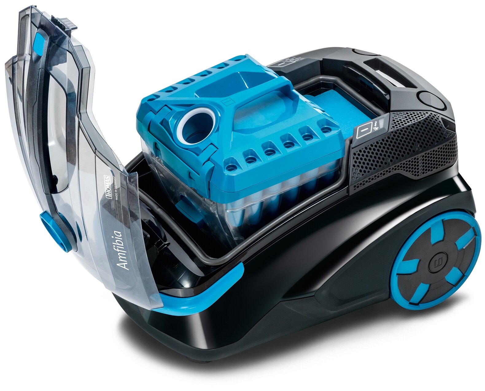 Первый пылесос пришел без основного шланга, пришлось оформить возврат. Все прошло быстро, деньги вернули. Заказали второго Томаса, с ним повезло, полный комплект. Покупка такого пылика была продиктована необходимостью мыть обивку дивана, т.к. в квартире двое детей, пачкают быстро, каждый раз приглашать химчистку жаба душит. Химчистка. Томас справился со своей задачей, на свелом диване было полугодовое разлитое пятно от колы, окончательно его убрал со второго прохода. Уборка с драйбоксом. На мой взгляд, удобно. Не надо вытряхивать бокс, все остается там до наполнения. Сначала пробовала именно эту уборку, т.к. читать инстукцию было некогда. Уборка с аквабоксом. Если честно, я была поражена, когда открыла посмотреть аквабокс после уборки одной комнаты. При том, что она казалась мне чистой))), грязь в боксе стояла шапкой и бурлила о_О. Откуда столько насосал грязи, не понятно)), но факт остается фактом. Влажная уборка полов (мытье). Не пробовала. Мне кажется, что после того, как пропылесосишь, шваброй это делать намного быстрее. Когда-нибудь попробую, конечно. Итоги: пылесос мощный, главный его плюс в химчистке мебели и двух боксах. Подойдет тому, кто делает акцент именно на этом. Если нужна быстрая уборка, раз-два пробежаться, то, наверное, этот вариант разочарует. (См. минусы). Минусы: пылик тяжеловат, вчера потоскала его с водой, сегодня спина болит. Как и писали другие, не всегда объезжает углы, встанет и стоит, не едет. Самый большой минус для меня - Томас не может переехать собственный провод. Такое маленькое препятствие для него - фатальное. Приходится часто возвращаться, поднимать тяжелого Томаса и заботливо его переносить через провод((( Не очень мне понравился основной шланг, простоватый какой-то. Один раз оставила пылесос с налитой водой в заднем контейнере для мытья, срочно нужно было уехать. Вернулась через 40 мин - на ламинате была огромная лужа, вода вытекла из этого контейнера.
