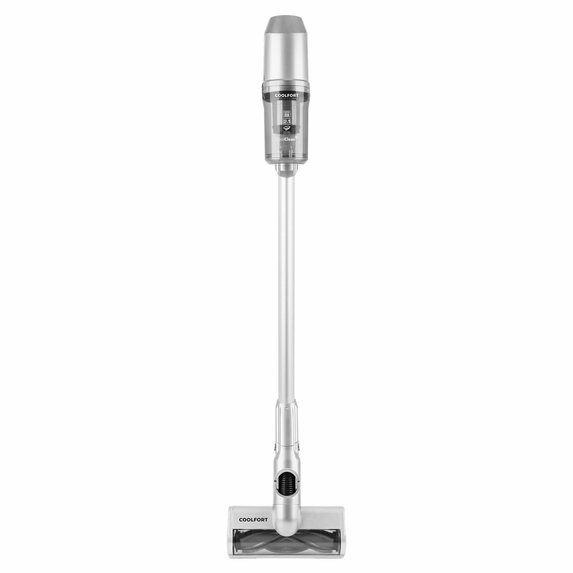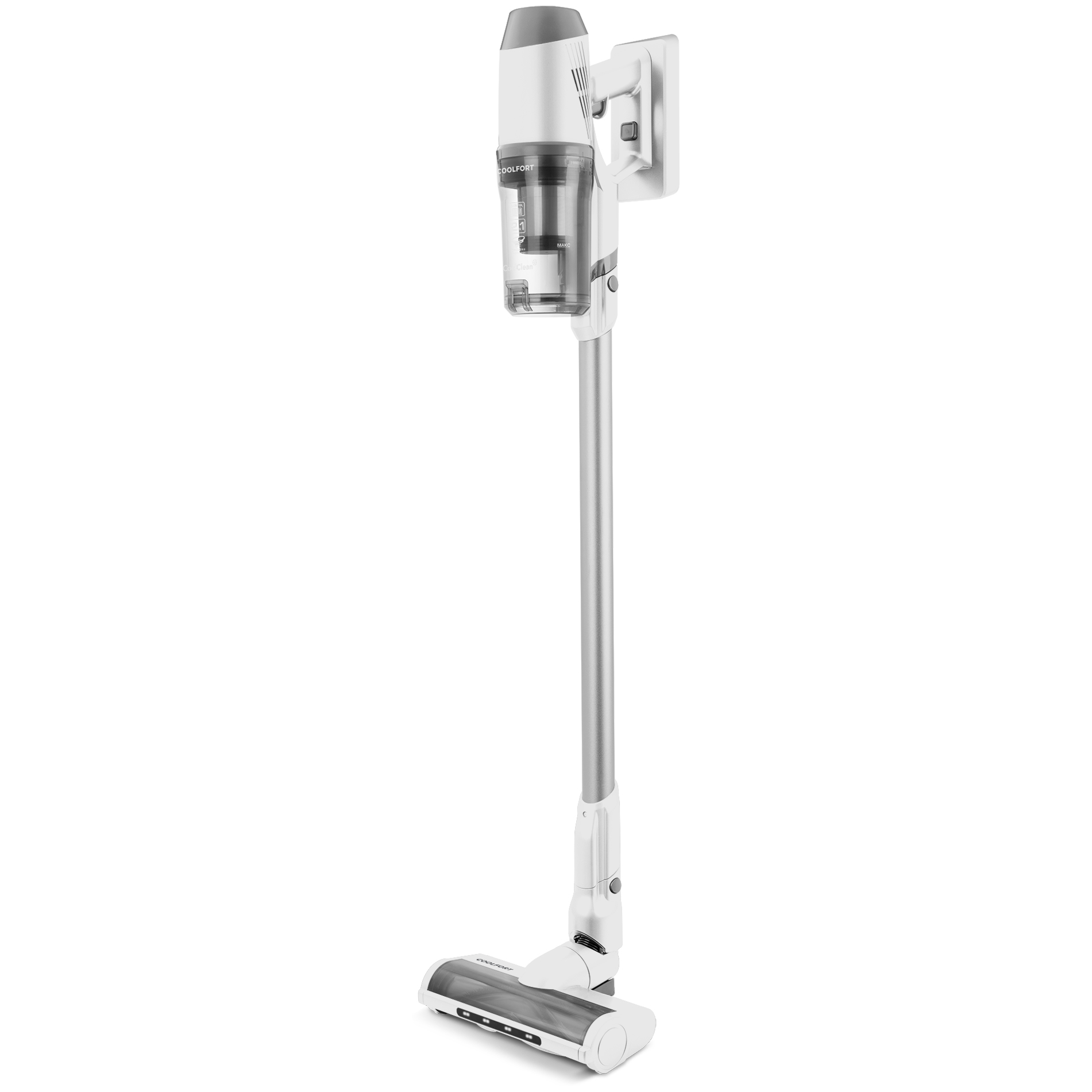 Общие характеристики: Бренд: Coolfort: Цвет товара: бело-серый: Отсоединяемый ручной пылесос: да: Тип уборки: сухая: Тип пылесборника: контейнер: Объем пылесборника: 0.9 л: Дополнительные функции: подсветка зоны уборки: Особенности конструкции: вертикальная парковка, регулятор мощности на корпусе: Фильтр тонкой очистки: есть: Питание: Тип питания: от аккумулятора: Тип аккумулятора в комплекте: Li-Ion: Емкость аккумулятора в комплекте: 2200 мА·ч: Время работы от аккумулятора: 32 мин: Время зарядки аккумулятора: 300 мин: Потребляемая мощность: 120 Вт: Мощность всасывания: 150 Вт: Комплектация: В комплекте: настенный держатель, турбощетка, щелевая насадка: Труба всасывания: цельная: Дополнительные характеристики: Дополнительная информация: настенное крепление;;