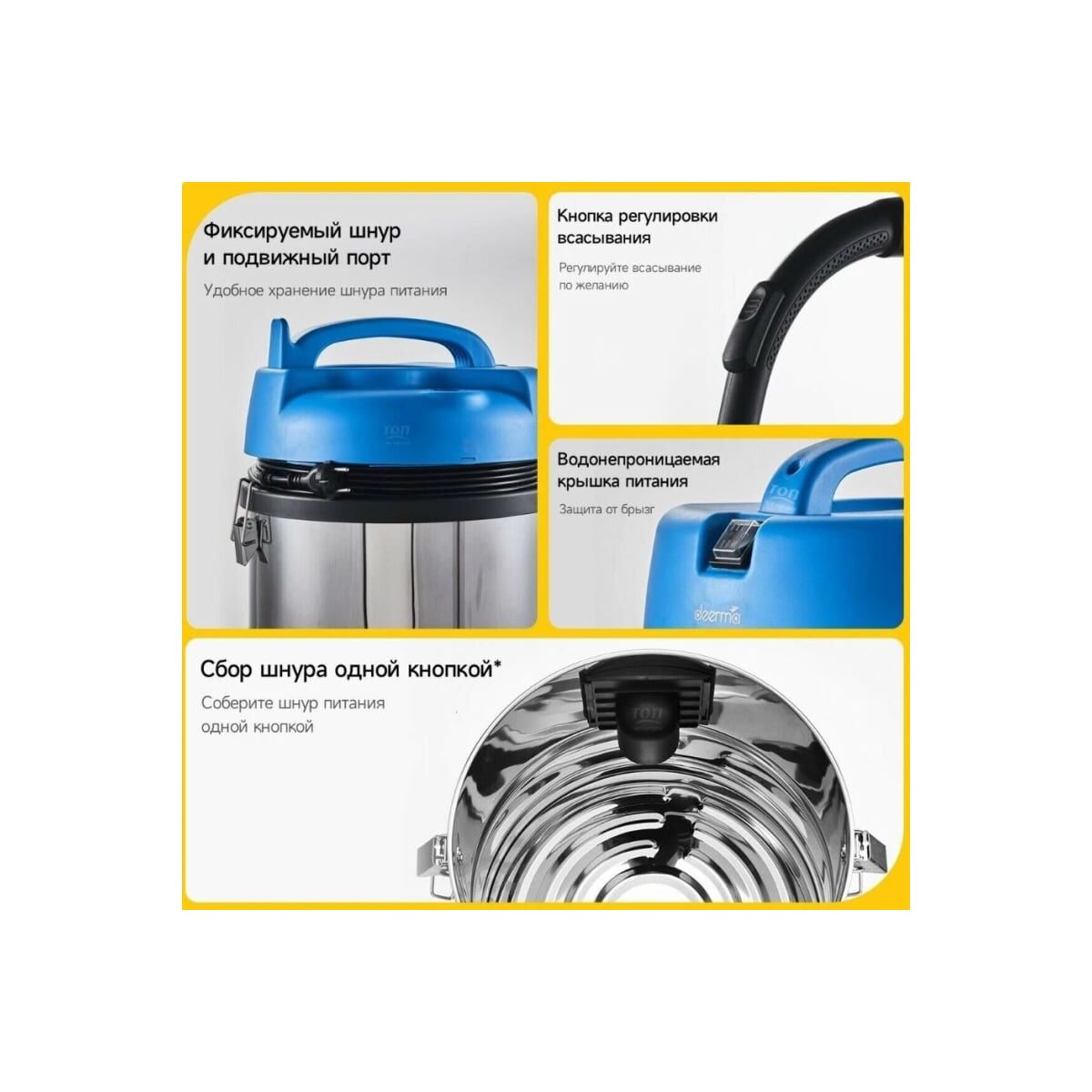Технические характеристики Deerma DEM-TJ151W : Тип пылесоса для сферы обслуживания: Тип питания сеть: Напряжение 220 В: Тип пылесборника мешок/контейнер: Объем мусоросборника 21 л: Длина кабеля 5 м: Мощность (Вт) 1400: Мощность всасывания 250 Вт: Тип аккумулятора нет: Напряжение аккумулятора нет В: Количество аккумуляторов в комплекте нет: Емкость аккумулятора нет А*ч: Время заряда пылесос работает от сети мин: Время непрерывной работы пылесос работает от сети мин: Мах площадь уборки на одной подзарядке пылесос работает от сети м²: Труба для всасывания телескопическая: Материал трубы для всасывания металл: Фильтр тонкой очистки (HEPA) нет: УФ-излучение нет: Моющий да: Возможность влажной уборки есть: Вертикальный нет: Ранцевый нет;;;;;