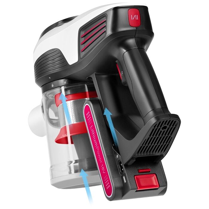 Тип вертикальный с портативным: Уборка сухая: Пылесборник система циклон: Характеристики: Потребляемая мощность 350 Вт: Мощность всасывания 100 Вт: Объем пылесборника 0.4 л: Фильтр тонкой очистки HEPA 13: Насадки в комплекте: Функции насадок щелевая: пылевая: турбощетка: Питание: Источник питания аккумулятор: Комплектный аккумулятор 1 шт: Напряжение батареи 21.6 В: Тип аккумулятора Li-Ion: Емкость аккумулятора 2 Ач: Время работы 25 мин / 8 мин на максимальной мощности /: Время зарядки 4 ч: Общее: Уровень шума 80 дБ: Вес 2.8 кг;;