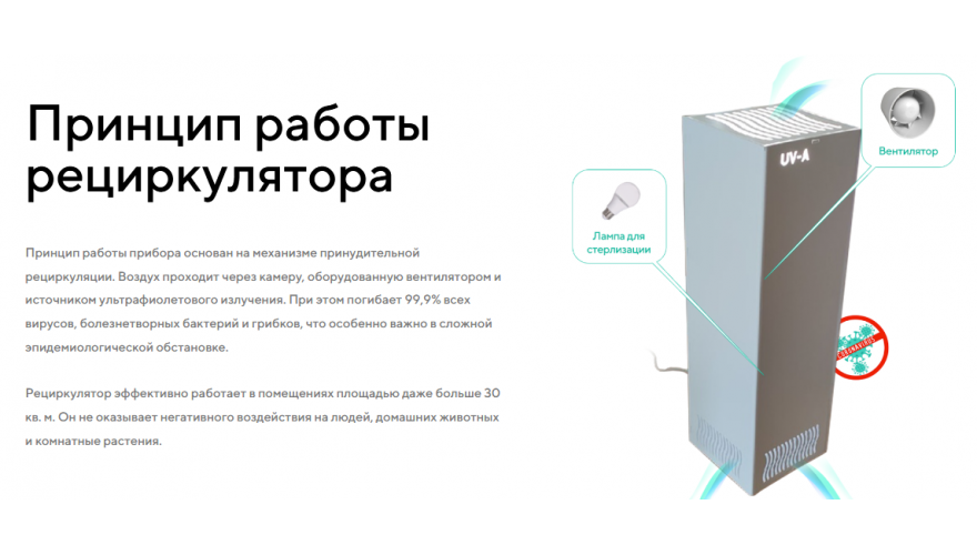 Рециркулятор UV-A бактерицидный на 200 куб.м. Белый