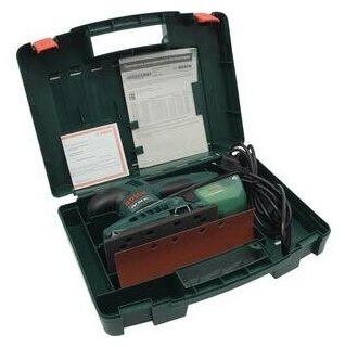 Основные характеристики; Тип питания от сети; Потребляемая мощность 200 Вт; Макс. частота колебания платформы 24000 кол/мин; Размер хода платформы 2 мм; Длина листа 230 мм; Ширина листа 93 мм; Крепление листа на зажимах; Особенности конструкции блокировка кнопки включения, пылесборник; Упаковка кейс; Вес 1.6 кг; Комплектация; пылесборник, шлифлист, кейс