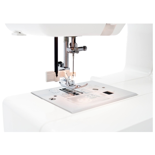 электромеханическое управление; горизонтальный челнок; количество операций: 11; стабилизатор усилия прокола; петля-полуавтомат; потайная строчка, эластичная потайная строчка; макс. ширина строчки: 5 мм; макс. длина стежка: 4 мм; рукавная платформа