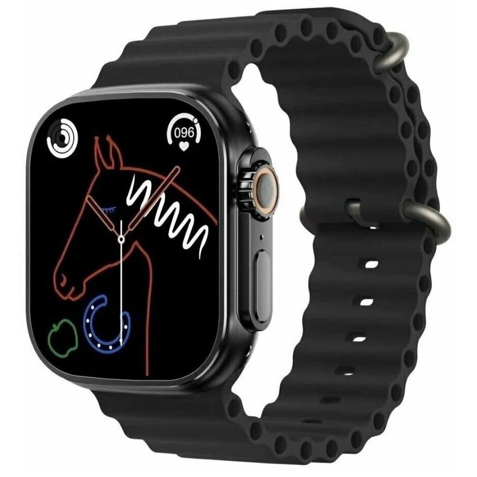Цвет корпуса: черный; Цвет браслета/ремешка: черный; Материал корпуса:алюминий; Материал браслета/ремешка: каучук, силикон; Цвет товара: черный; Тип: умные часы; Процессор: Ruiyu 8762DT; Количество ядер процессора: 1; Совместимость с ОС: iOS, Android; Минимальная поддерживаемая версия Android: 5.0; Минимальная поддерживаемая версия iOS: 5; Особенности: беспроводная зарядка, воспроизведение аудио, магнитная зарядка; Дополнительные функции: микрофон, динамик, вибрация, компас, секундомер, таймер, датчик освещенности, шагомер, будильник, календарь, калькулятор, кнопка экстренного вызова; Форма корпуса часов: прямоугольник; Размер корпуса: 49 мм; Материал корпуса: алюминий; Цвет корпуса: черный; Материал браслета/ремешка: каучук, силикон; Цвет браслета/ремешка: черный; Датчики и функции мониторинга: Датчик ЧСС; Функции мониторинга: измерение уровня кислорода в крови, измерение пульса, измерение температуры тела, мониторинг сна, мониторинг физической активности, мониторинг калорий; Функции экрана: сенсорный экран;