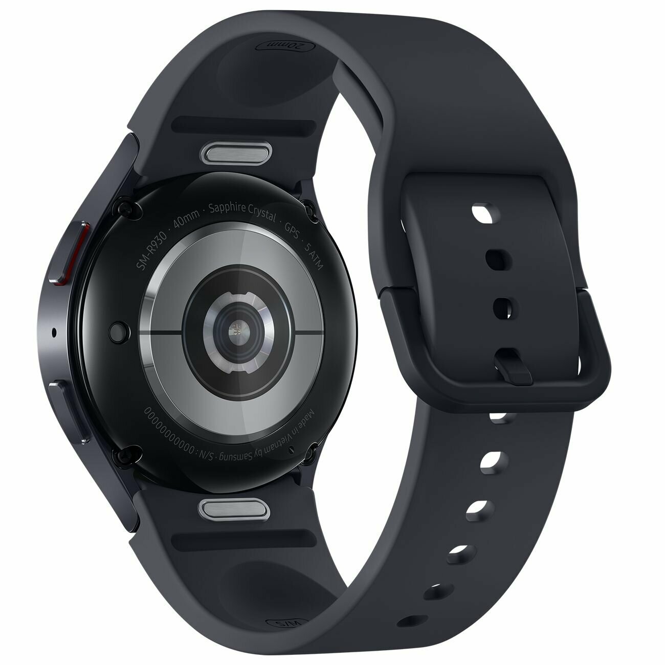 Версия: Ростест (EAC): Тип: умные часы: Процессор: Exynos W930: Количество ядер процессора: 2: Тактовая частота процессора: 1400 МГц: Операционная система: Wear OS: Совместимость с ОС: Android, iOS: Минимальная поддерживаемая версия Android: 7.0: Линейка: Galaxy Watch: Особенности: беспроводная зарядка, магнитная зарядка, поиск смартфона, фонарик: Дополнительные функции: барометр, будильник, вибрация, гироскоп, датчик освещенности, календарь, компас, микрофон, наличие фотокамеры, секундомер, таймер, шагомер: Форма и материалы: Форма корпуса часов: круг: Размер корпуса: 40 мм: Материал корпуса: алюминий: Цвет корпуса: темно-серый, черный: Материал браслета/ремешка: фторэластомер: Цвет браслета/ремешка: черный: Датчики и функции мониторинга: Мониторинг: ЭКГ, акселерометр, калорий, пульса, сна, температуры тела, термометр, тонометр, уровня кислорода в крови, уровня стресса, физической активности: Экран: Функции экрана: наличие экрана, постоянная работа экрана, сенсорный экран: Диагональ: 1.3": Разрешение: 432x43