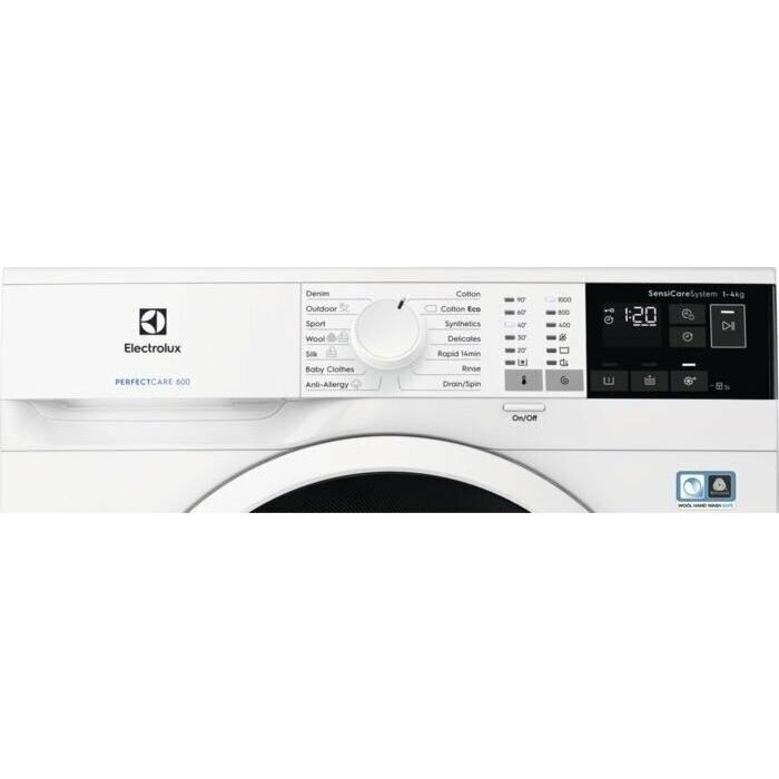 ОСНОВНЫЕ ХАРАКТЕРИСТИКИ: Тип: отдельностоящая: Серия: PerfectCare 600: Загрузка: фронтальная: Высота, см: 84.5: Ширина, см: 59.5: Глубина, см: 38: Объем барабана, л: 32: Загрузка при стирке, кг: 4: Класс энергопотребления: C (новое обозначение – F): Класс стирки: A: Класс отжима: C: ДИЗАЙН И КОНСТРУКЦИЯ: Управление: электронное: Дисплей: LED: Цвет: белый: Цвет панели управления: черный: Двигатель: универсальный: Материал бака: карборан: ПРОГРАММЫ СТИРКИ: Количество программ, шт.: 14: Хлопок: 40 °С: 90°C - холодная стирка: Eco 40 °С: Eco 60 °С: Синтетика: 40 °С: 60°C - холодная стирка: Деликатная стирка: Да: Шерсть: 40°C: Шелк: Да: Куртки: 30°C: 40°C - стирка в холодной воде: Джинсы: Да: Детское белье: 40 °C: 60 °C — стирка в холодной воде: Спортивная одежда: 30°C: 40°C - стирка в холодной воде: Быстрая, 14 мин: Есть: Антиаллергенная: стандартная: Полоскание: Да: Отжим / Слив: Да: ФУНКЦИИ И ТЕХНОЛОГИИ: Технология стирки: Eco Valve: Опция TimeManager: Да: Технология Fuzzy Logic: Да: SensiCare: Да: SoftPlus: Да: