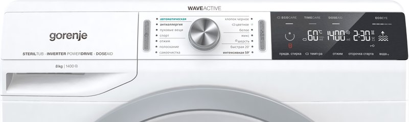 - Дополнительная информация: анти аллергия, само-очистка, автоматическая, белые ткани; EcoEye, барабан WaveActive, DoseAid