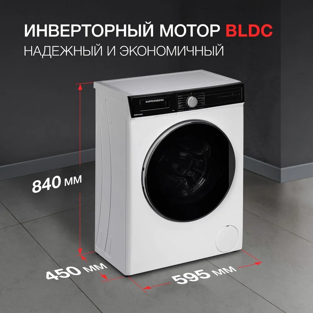 Основные: Тип загрузки: Фронтальная: Класс энергопотребления: A+++: Класс стирки: A: Класс отжима: B: Вид стиральной машины: Автоматическая: Заводские данные: Загрузка белья, кг: 6: Максимальная скорость отжима, об./мин.: 1200: Инверторный двигатель: Да: Уровень шума при стирке, дБ: 50: Уровень шума при отжиме, дБ: 75: Корпус: Размеры, мм (ШхГхВ): 595*450*840: Особенности конструкции: Рельефная поверхность барабана: Барабан: Рельефная поверхность: Материал бака: Нержавеющая сталь: Материал барабана: Нержавеющая сталь: Ширина, см: 59.5: Раковина в комплекте: Нет: Высота, см: 84: Глубина, см: 45: Вес, кг: 59.1: Общие: Тип: Стиральная машина: Управление: Тип управления: Электронное: Дозагрузка белья: Да: Наличие дисплея: Да: Функциональные особенности: Отсрочка запуска: Управление со смартфона: Нет: Отложенный старт, ч: 24: Безопасность: Защита от детей: Режимы работы: Наличие сушки: Без сушки: Количество программ стирки: 15: Обработка паром: Да: Программы стирки: Быстрая стирка, Дополнительное полоскание, Отжим