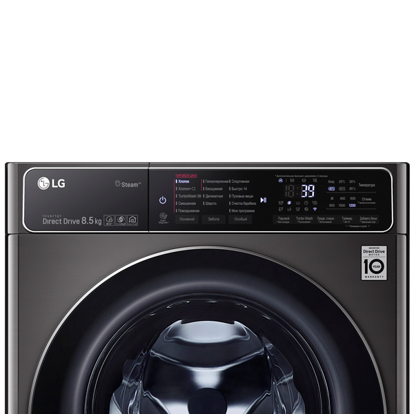 Основные характеристики: Вид: автоматическая: Установка: отдельностоящая: Конструкция: барабанная: Загрузка: фронтальная: Размер: узкая: Мотор: инверторный: Прямой привод: Да: Управление: сенсорное: Дисплей: Да: Стирка: Максимальная загрузка белья, в килограммах: 8.5: Класс стирки: A: Расход воды за стирку, в литрах: 55: Уровень шума при стирке, в децибелах: 52: Отжим: Класс отжима: B: Максимальная скорость отжима, оборотов в минуту: 1200: Уровень шума при отжиме, в децибелах: 70: Сушка: Сушка: Нет: Программы: Количество программ стирки: 11: Программы стирки: шерсть; экспресс; деликатные ткани; антиаллергенная; пуховые изделия; дополнительное полоскание; очистка барабана: Отсрочка запуска: Да: Максимальное время отсрочки запуска, в часах: 19: Функции: Индикация: включения; времени до конца программы; режима работы; этапов программы: Обработка паром: Да: Воздушно-пузырьковая система: Да: Дозагрузка белья: Да: Автоматическая дозировка моющего средства: Нет: Защита и безопасность: защита от детей; защита от скач