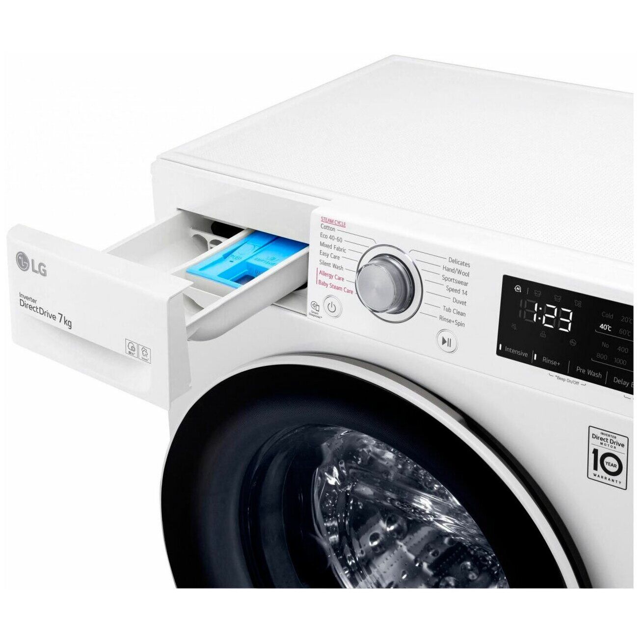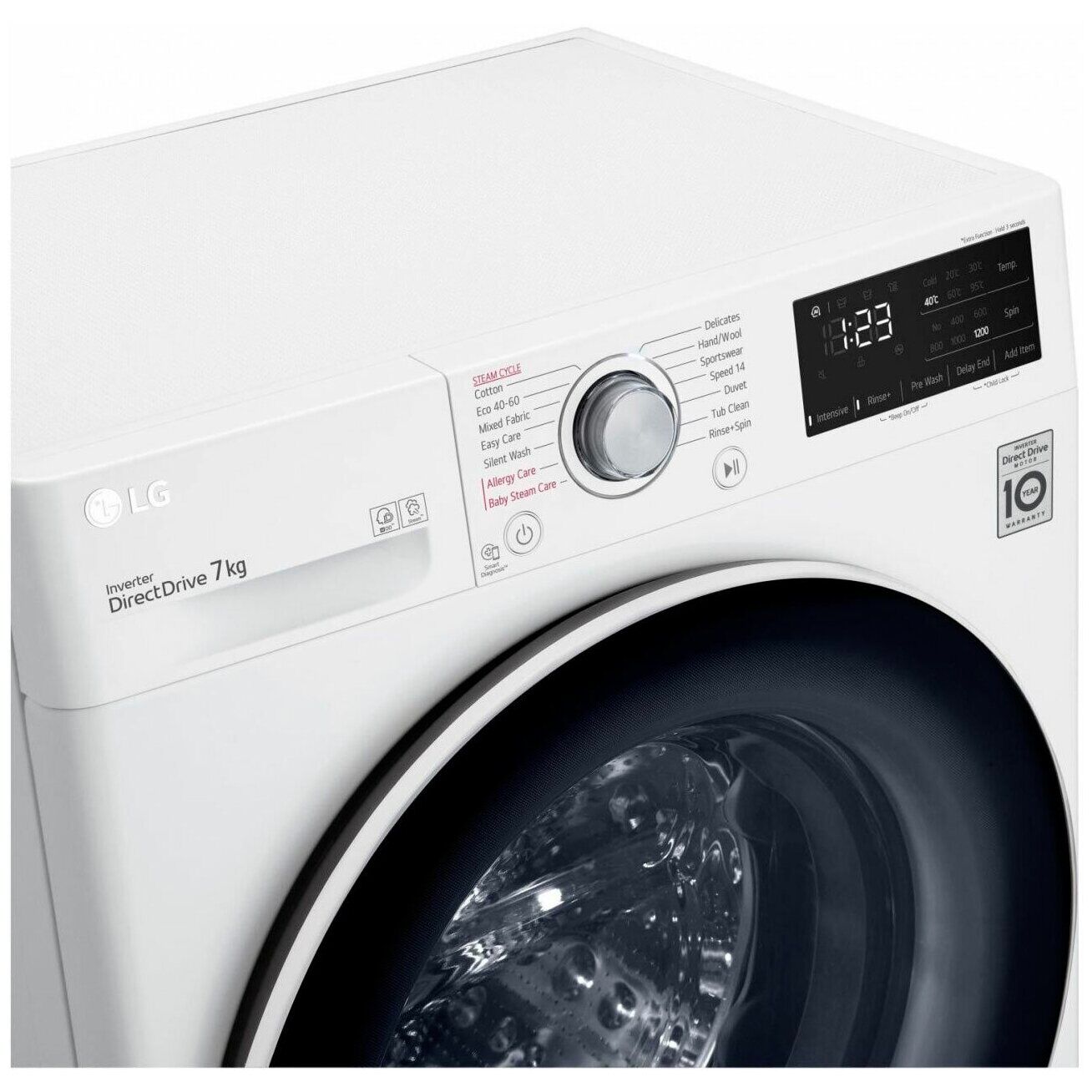 Габаритные размеры; Габаритные размеры (В*Ш*Г); 85*60*45.5 см; Двигатель; Мотор; инверторный; Загрузка; Максимальная загрузка; 7 кг; Максимальная загрузка (синтетика); 3.5 кг; Максимальная загрузка (шерсть); 2.5 кг; Режимы работы; Режим "антиаллергия"; Да; Деликатная стирка; Да; Детские вещи; Да; Режим "обработка паром"; Да; Режим "очистка барабана"; Да; Режим "пуховые изделия"; Да; Ручная стирка; Да; Режим "Спорт"; Да; Ускоренная стирка; Да; Хлопок; Да; Шерсть; Да; Экономичная стирка ECO; Да; Программы; Минипрограмма; 14 мин; Отжим; Максимальная скорость отжима; 1200 об/мин; Регулировка скорости отжима; Да; Энергоэффективность; Класс энергоэффективности; A; Класс стирки; A; Класс отжима; B; Расход воды за цикл; 45 л; Безопасность; Защита от детей; Да; Защита от протечек; да; Функции; Дозагрузка белья во время программы; Да; Таймер; Отложенный старт; Да; Управление; Тип управления; электронный; Экран ; Тип дисплея; ЖК цифр./символьный; Корпус; Открытие дверцы; налево; Цвет; Цвет; белый; Цвет дверцы люка; чер