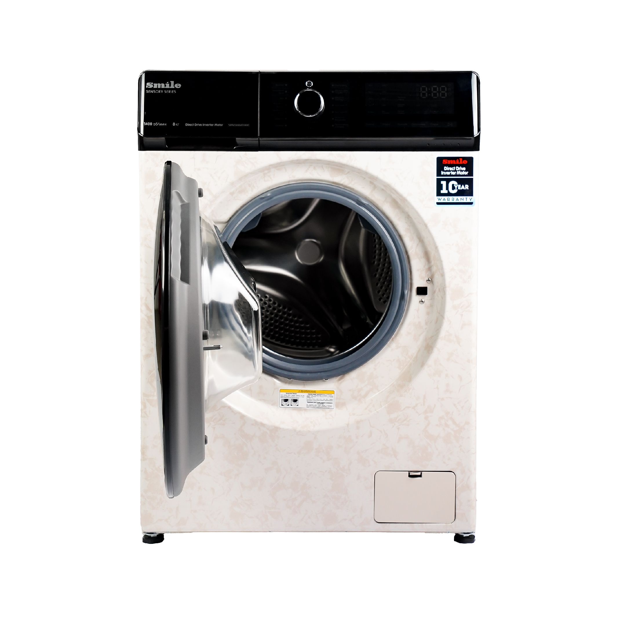 Страна-производитель: Китай: Общие параметры: Тип: стиральная машина: Модель: SMILE SWMSW8MB1400: Вид: автомат: Основной цвет: бежевый мрамор: Дополнительный цвет: черный: Габариты и вес: Ширина (см): 59.5: Высота (см): 85: Глубина (см): 60: Вес (кг): 66: Габариты в упаковке (ШxВxГ): 66х88,5х67: Вес в упаковке (кг): 71: Основные характеристики: Тип загрузки: фронтальная: Загрузка белья для стирки и отжима (кг): 8: Сушка: нет: Прямой привод: да: Инверторный двигатель: да: Дисплей: да: Тип управления: поворотный механизм, сенсорное: Язык панели управления: русский: Изменение температуры стирки: да: Диапазон температур (°C): 20-90: Уровень шума при стирке (дБ): 60: Расход воды за стирку (л): 55: Диаметр загрузочного люка (см): 52.2: Угол открывания люка (градус) (°): 150: Функционал: Функциональные особенности: обработка паром, самодиагностика: Количество программ стирки: 14: Программы: Хлопок,Синтетика,Деликатная стирка,Детская одежда,Быстрая 15',Быстрая 42',Очистка барабана,Полоскание+отжим,Отжим,Шерсть,Постел