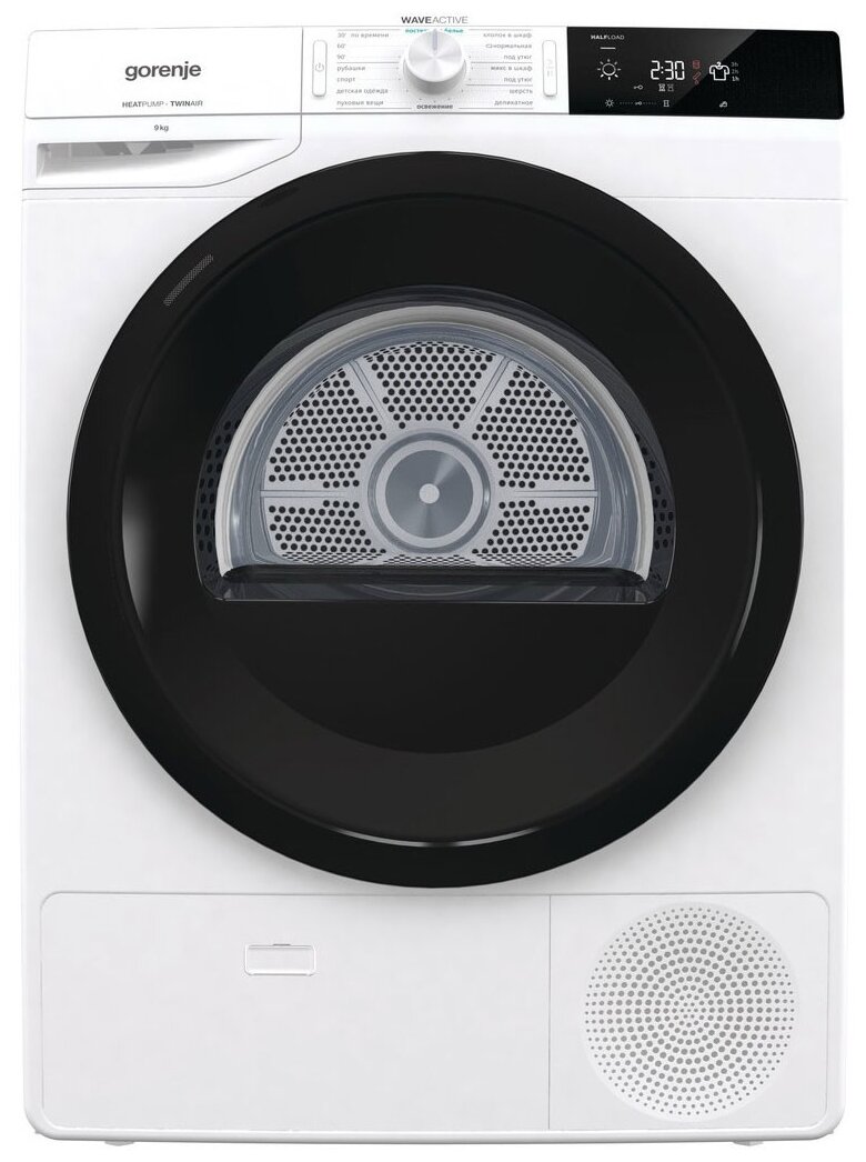 тип загрузки: фронтальная; максимальная загрузка: 9 кг; установка: отдельно стоящая; тип сушки: конденсационная; ШхГхВ: 600х625х850 мм; режимы/функции: подушки / одеяла, сорочки (рубашки), постельное бельё, подогрев белья; доп. функции: контроль влажности, отложенный старт, реверсивное вращение барабана, предотвращение сминания, сбор конденсата; особенности конструкции: дисплей; безопасность: защита от детей; класс энергоэффективности: A; уровень шума: 65 дБ