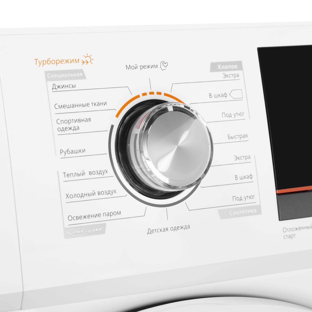 Особенности Съемный резервуар для слива конденсата - благодаря тому, что сушильный барабан оснащен специальным резервуаром, в котором остается конденсат после сушки одежды, вы можете поставить и пользоваться устройством в любом помещении, даже если в нем нет оборудования для слива. Датчик влажности автоматически определит влажность белья и отрегулирует время сушки в зависимости от количества белья, которое вы положили в сушильную машину. Большой информативный дисплей позволит отслеживать и контролировать все параметры сушки и при необходимости изменить их на ваше усмотрение, например температуру (от 20-70С) или сократить цикл сушки по времени. Функция «Отложенный старт» (до 24) откроет вам возможность легко планировать свой день: если вам нужно завершить стирку к определенному времени или включить устройство в намеченные часы, то вы сможете с легкостью запрограммировать стиральную машинку на включение в определенное время. Режим турбо - поможет вам сократить продолжительность выбранной программы без потери к