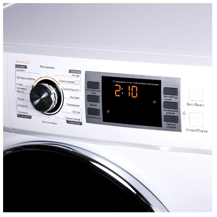 - Режимы / функции: джинсы, синтетика, ускоренная сушка, проветривание, сорочки (рубашки), хлопок, холодная сушка, спорт