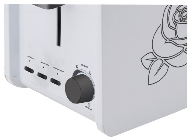 Тостер Centek CT-1427 (бел) 800 Вт, 6 уровней мощности, 2 тоста, функции разморозка, отмена, повтор