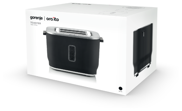линейка: Gorenje by Ora ïto White/Black; на 2 тоста; мощность 800 Вт; электронное управление; функция размораживания; ненагревающийся корпус; решетка для подогрева булочек