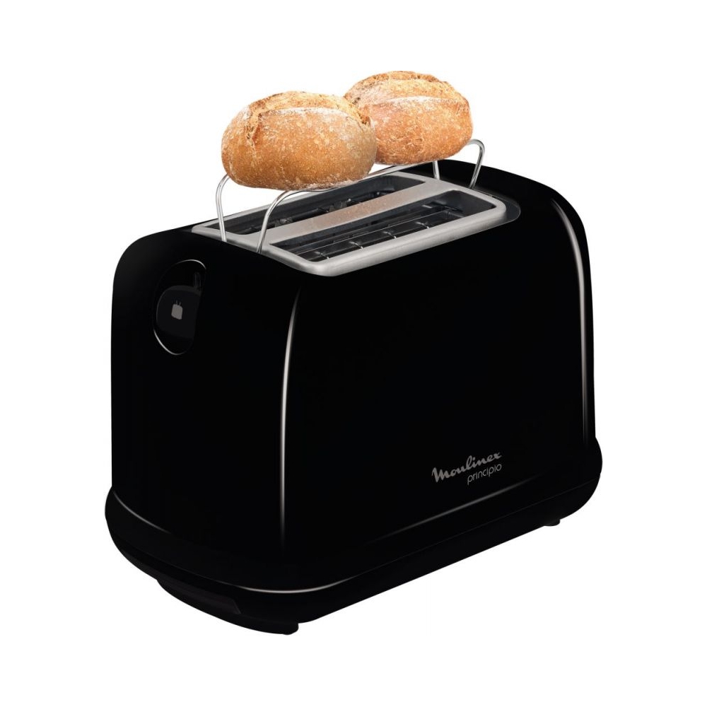 Черный электрический тостер Principio с двумя отделениями для хлеба и поддоном для крошек станет лучшим помощником в приготовлении тостов.