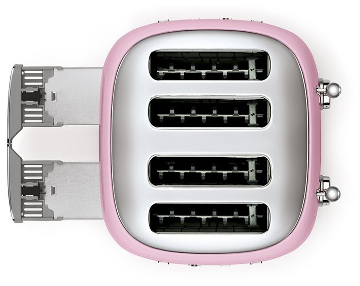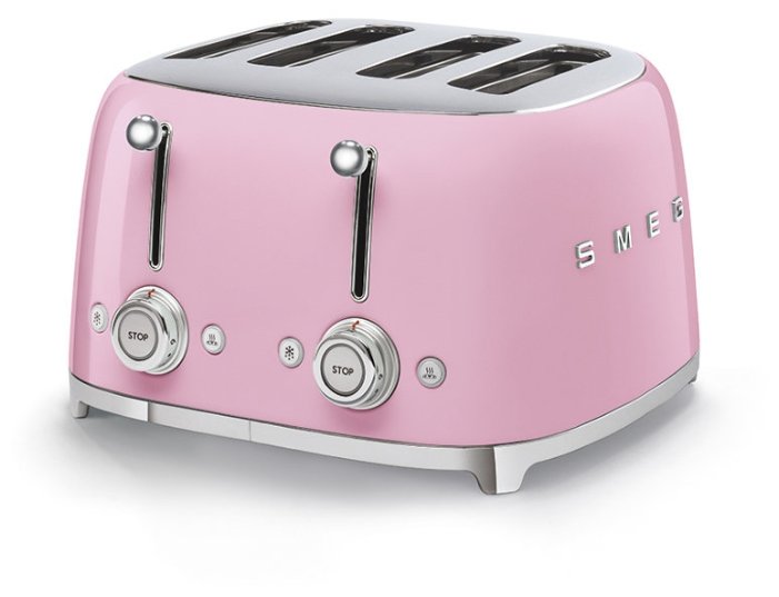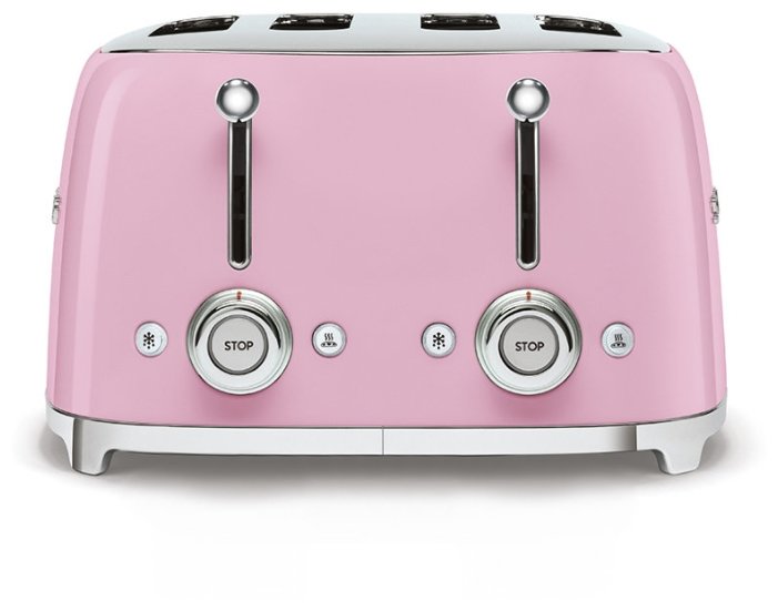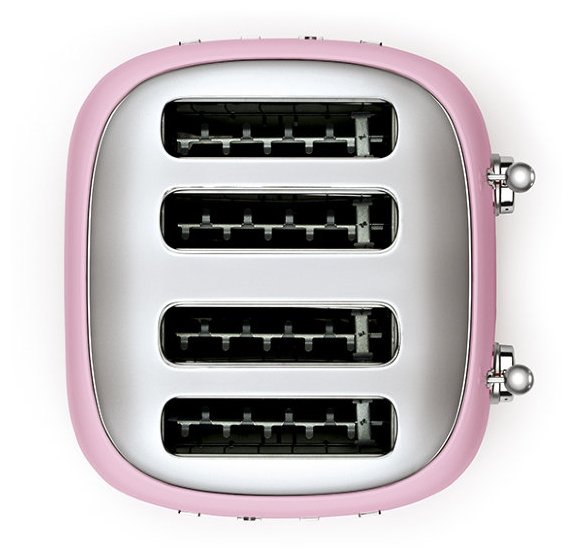 Тостеры SMEG/ Тостер на 4 ломтика, Цвет розовый; Функции: подогрев, размораживание, багель; 6 уровней поджаривания; Съемный поддон для крошек.