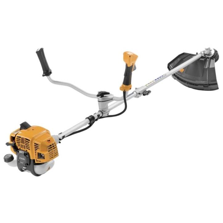 Тип переносной; Ширина скашивания 43 см; Скорость вращения ножа до 11000 об./мин; Травосборник отсутствует; Уровень шума 109 дБ; Функциональность; Возможность установки кустореза/сучкореза; Двигатель; Двигатель бензиновый, двухтактный; Мощность 0.95 л.с.; Расположение двигателя верхнее; Рабочий объем 25 куб.см; Тормоз двигателя есть; Топливный бак на 0.65 л; Конструкция; Ручка с регулируемой высотой; Материал деки пластик; Материал корпуса пластик; Штанга прямая; Форма рукоятки Т-образная (велосипедная); Антивибрационная система есть; Колеса отсутствуют; Дополнительная информация; Комплектация леска (2.4 мм), нож, плечевой ремень; Особенности разборная штанга; ширина скашивания ножом - 25.4 см; Габариты; Вес 7.2 кг; Размеры (ШxДxВ) 69x189x44 см
