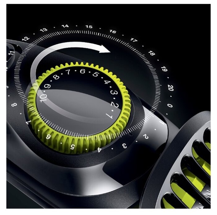 - Настройка длины стрижки: регулятором и сменой насадок