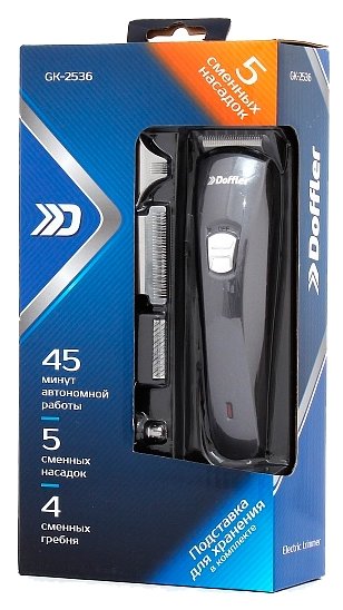 - Дополнительная информация: насадка-бритва; триммер для стрижки в носу и ушах; узкий триммер; Т-нож; щеточка для чистки; масло