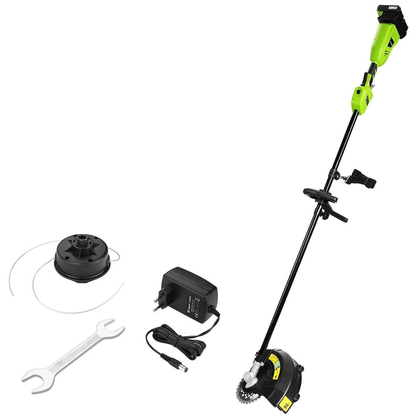 Общие характеристики; Тип; триммер; Ширина скашивания; 18 см; Скорость вращения ножа; до 6400 об./мин; Функциональность; Дополнительные функции; аккумулятор в комплекте, возможность установки кустореза/сучкореза, кусторез/сучкорез; Двигатель; Двигатель; электрический; Мощность; 350 Вт; Расположение двигателя; верхнее; Обороты двигателя; 6400; Конструкция; Материал корпуса; пластик; Штанга; прямая; Форма рукоятки; D-образная; Колеса; отсутствуют; Дополнительная информация; Режущий элемент триммера; леска и нож; Толщина лески; 2 мм; Плечевой ремень; есть; Подробная комплектация; триммер садовый аккумуляторный, батареи 20В (2 шт.), зарядное устройство (1 шт.), гаечный ключ (1 шт.), металлическое лезвие (1 шт.), триммерная головка (1 шт.); Габариты; Вес; 6.23 кг