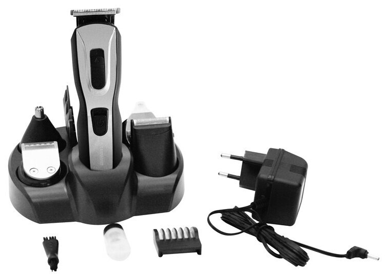 назначение: для стрижки волос, для бороды и усов, для стрижки в носу и ушах; материал лезвий: нержавеющая сталь; длина стрижки: 3–38 мм; регулировка длины стрижки: смена насадок и регулировка; питание: автономное/от сети; время работы от аккумулятора: до 45 мин