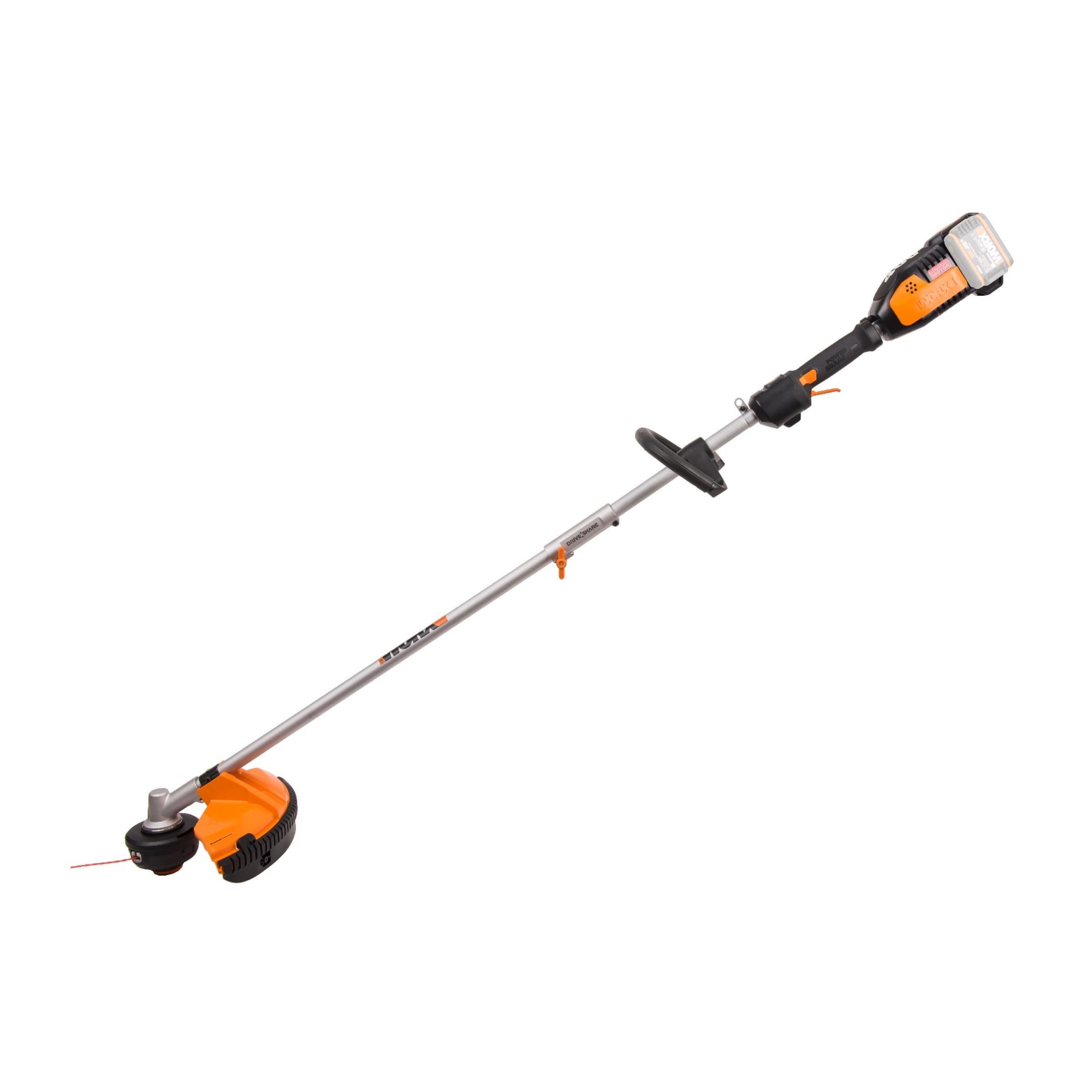 Тип триммер аккумуляторный; Конструкция; Вид штанги прямой; Тип привода прямой вал; Форма ручки D-образная; Складная ручка есть; Регулировка высоты ручки есть; Режущий элемент; Вид режущего элемента леска/нож; Диаметр лески 2.4 мм; Ширина скашивания для лески 330 мм; Питание; Платформа Worx PowerShare; Количество аккумуляторов/батареек в комплекте нет; Модель аккумулятора PowerShare; Напряжение аккумулятора 40 В; Емкость аккумулятора 8 А*ч; Время зарядки аккумулятора 120 мин; Зарядное устройство в комплекте нет; Тип электродвигателя бесщеточный; Двигатель; Расположение двигателя верхнее; Максимальное число оборотов 6000 об/мин; Дополнительная информация; Защита внешний ограничитель; Комплектация катушка с леской; Особенности система автоподачи лески; Дополнительно длина лески в катушке — 6 м; Габариты и вес; Высота 270 мм; Длина 1850 мм; Вес 3.9 кг