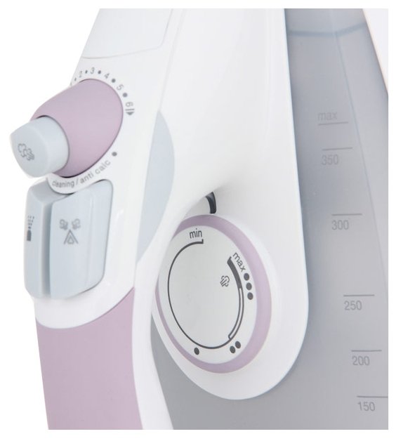 Отлично скользит В меру тяжелый, чтобы его могла поднять хрупкая девушка и при этом ткань разглаживалась без дополнительных усилий Больше двух режимов постоянного пара Отверстия подачи пара находятся довольно близко к носику, что позволяет отпарить даже труднодоступные места