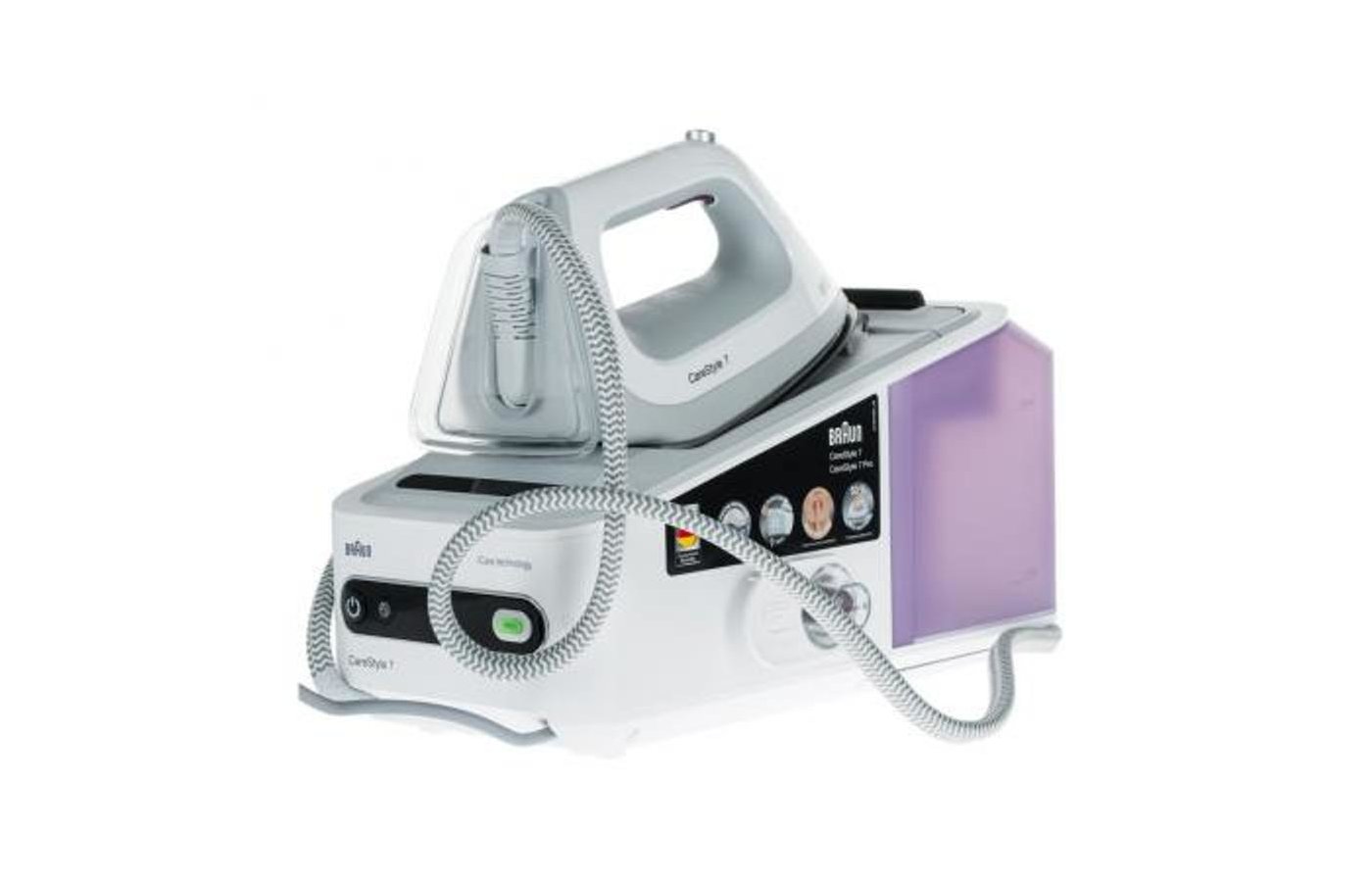 Максимальное давление пара 7 бар, эко-режим, система фиксации утюга, подошва Eloxal 3D BackGlide, вертикальное отпаривание