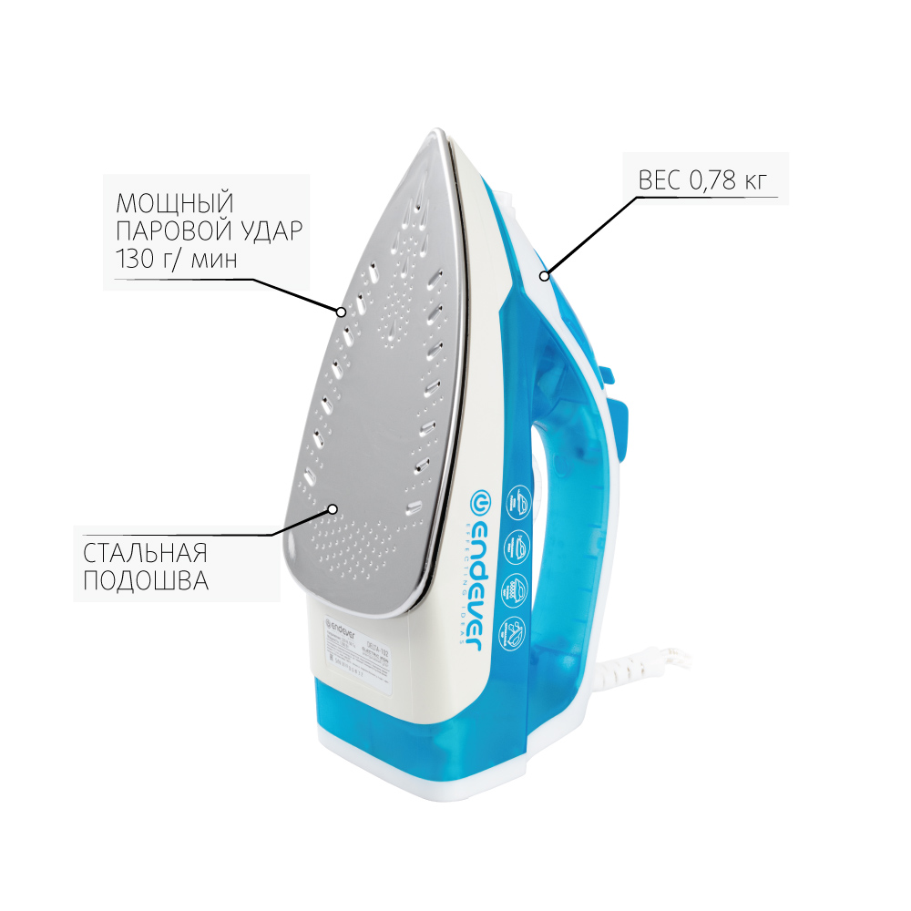 Муж предпочитает, чтобы все вещи были выглажены, даже полотенца. Подарил мне для удобства Утюг ENDEVER Delta-102. По цене он не совсем дорогой, в использовании очень простой и удобный. Подошва утюга выполнена из нержавеющей стали. Есть возможность вертикального выпаривания. Паровой удар очень мощный, можно им пользоваться в постоянном режиме. Если нет необходимости в работе паром, то можно просто пользоваться разбрызгиванием воды. Для этого есть резервуар, объемом 150 мл. Во время работы утюгом, я изменяю температуру. Таким образом, я могу гладить вещи любого качества. Благодаря этому утюгу, я полюбила процедуру глажки. Достоинства:
