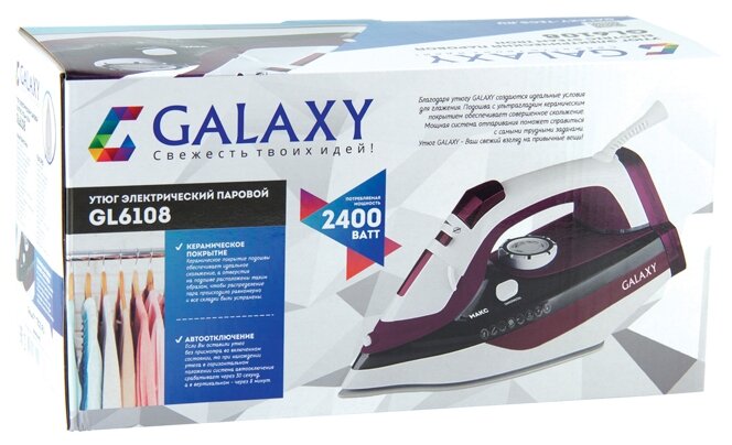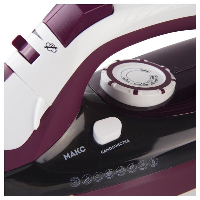 мощность: 2400 Вт; материал подошвы: керамика; вертикальное отпаривание; функция разбрызгивания; автоматическое отключение; противокапельная система