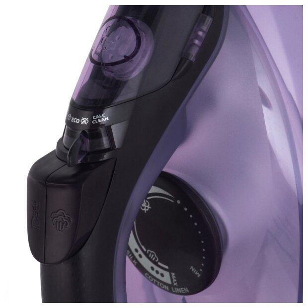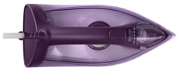 мощность: 2600 Вт; материал подошвы: керамика; постоянный пар: 40 г/мин; паровой удар: 230 г/мин; вертикальное отпаривание; функция разбрызгивания; противокапельная система; вес: 1.3 кг