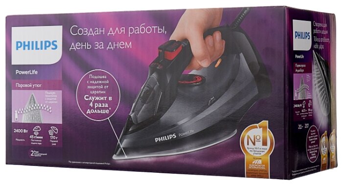 Как всегда у Филипса классная подошва. Удобная рукоятка. Большое заливное отверстие. Стакан для залива воды в комплекте. Отпаривает нормально (не парогенератор ведь). Наличие автоотключения. Низкая цена (для модели с автоотключением). Достоинства: