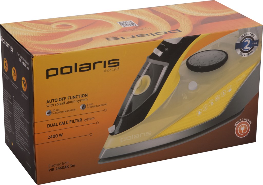 мощность: 2400 Вт; материал подошвы: керамика; постоянный пар: 45 г/мин; паровой удар: 145 г/мин; вертикальное отпаривание; функция разбрызгивания; автоматическое отключение; противокапельная система