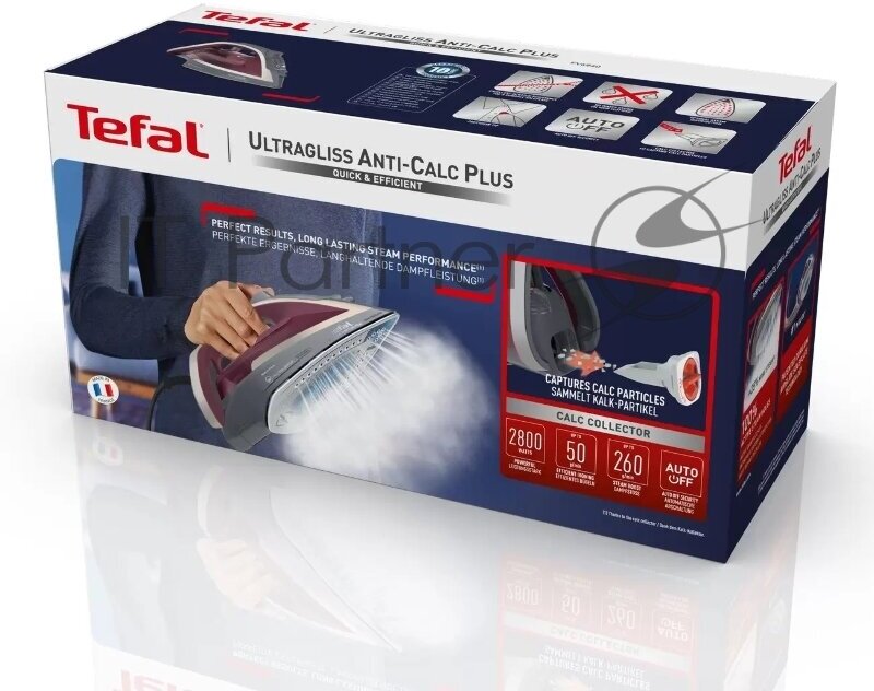материал подошвы: металлокерамика, мощность: 2800 Вт, автоматическое отключение, дополнительные функции: автоматическая регулировка пара, паровой удар, постоянная подача пара, функция разбрызгивания, вертикальное отпаривание, расход при паровом ударе: 260 г/мин, расход при постоянной подаче пара: 50 г/мин, длина сетевого шнура: 2 м, объeм резервуара для воды: 270 мл, защита: от накипи, противокапельная система