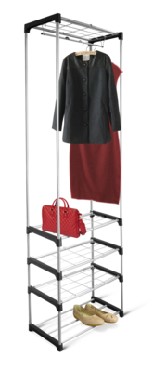 Гардеробная за пять минут - поможет разместить множество ваших вещей.Высокая вешалка с полками и штангой позволяет рационально использовать площадь пола.Превосходно смотрятся в комплекте с моделями SHT-WR11 и SHT-WR15; При использовании двух и более вешалок, можете скрепить их между собой клипсами, что придает жесткость и устойчивость конструкциям; В ней предусмотрены 5 полок и штанга для вешалок-плечиков.Полки можно устанавливать в любой последовательности.Выполнена из металла, диаметр/толщина трубы 16х0,8 мм. и пластика.Расстояние между средними полками - 215 мм., между последними - 296 мм.Размеры нижней полки: 600х305х296 мм.Максимальная распределенная нагрузка на одну полку - 5 кг., на одну штангу - 5 кг.Изделие полностью разборное, что обеспечивает простоту сборки и хранения.