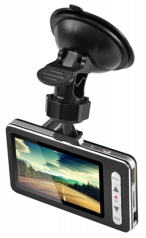 угол обзора 120°; экран 2.7"; разрешение видео 1920×1080; циклическая запись; поддержка карт памяти microSDHC; встроенный микрофон; датчик удара (G-сенсор); размеры 86х13х45 мм