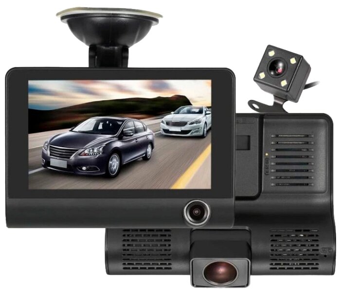 Искал видеорегситратор с 3 камерами и дешевле, чем эта модель, не нашел ничего. По параметрам все устроило. Запись ведется одновременно на 2 камеры (можно выбрать в меню на какие именно). Я обычно выбираю комбинацию передняя + задняя. Когда вожу пассажиров, выставляю режим перед + салон. Выносную камеру заднего вида можно использовать как парковочную систему. Снимает качественно: достаточный угол обзора, хорошая цветопередача, все видно в кадре. Есть ночной режим, картинка более светлая получается. Крепление надежное, есть меню на русском языке. Всем доволен.Достоинства: