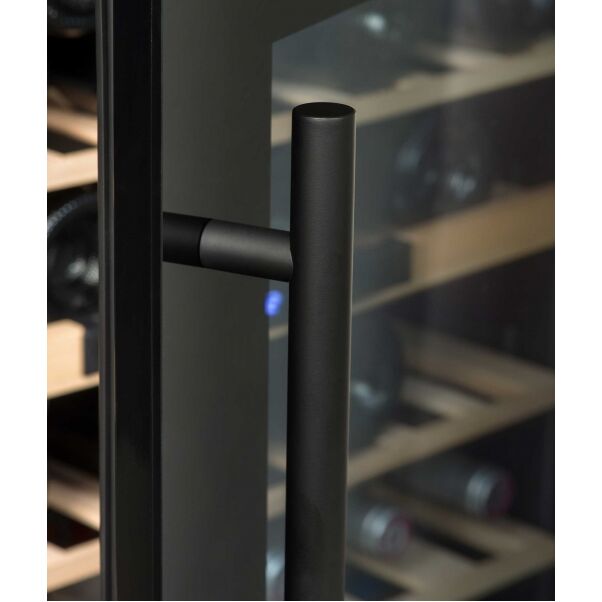 Количество зон одна Температурный режим +5..+20 °C Количество бутылок 44 шт. Условие эксплуатации +16..+38 °C Возможность встроить да, только в колонну Хладагент R600a Охлаждение динамическое Вид охлаждения компрессорное Дверь стеклянная в черной раме, стекло с защитой от УФ Размер двери (ШхВ) 590х595 мм Ручка двери навесная, черная Полки 4 шт, деревянные Подсветка есть, LED, голубая Объем 88 л. Внутренняя влажность 30-70 % (ванночка с водой, в комплекте есть) Потребляемая мощность 60 Вт Энергопотребление в сутки 0,372 кВт Энергетический класс G (по таблице классов с 2021г) Номинальное напряжение 220 В, 50 Гц Корпус черный, металлический Разморозка автоматическая Угольный фильтр нет Зимний режим нет Перевеска двери есть Замок нет Управление сенсорное Уровень шума 41 дБ Сигнал тревоги визуальный и звуковой Защита от детей нет Размеры (ШхГхВ) 590х560х595 мм Масса (без упк./в упк.) 32 / 35 кг Размеры ниши (ШхГхВ) 550х550х590 мм Размер в упаковке (ШхГхВ) 656х620х635 мм
