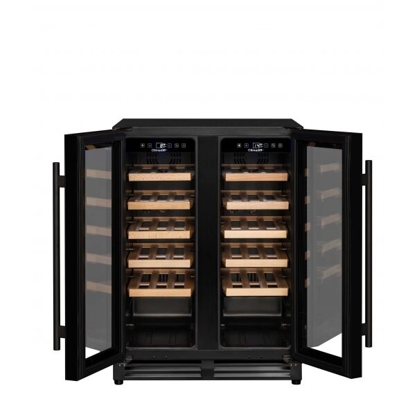 Количество зон две Температурный режим +5..+20 °C (слева 5-12 / справа 12-20) Количество бутылок 40 шт. Условие эксплуатации +16..+38 °C Возможность встроить есть Хладагент R600a Охлаждение динамическое Вид охлаждения компрессорное Дверь стеклянная в черной раме, стекло с защитой от УФ Ручка двери навесные, черные Полки 10 шт, деревянные Подсветка есть, LED, белая Объем 120 л. Внутренняя влажность 30-60 % (ванночка с водой, в комплекте нет) Потребляемая мощность 110 Вт Энергопотребление в сутки 0,356 кВт Энергетический класс G (по таблице классов с 2021г) Номинальное напряжение 220 В, 50 Гц Корпус черный, металлический Разморозка автоматическая Угольный фильтр есть (2 шт) Зимний режим нет Перевеска двери нет Замок нет Управление сенсорное и по wi-fi через приложение Vinotag Уровень шума 39 дБ Сигнал тревоги нет Защита от детей нет Размеры (ШхГхВ) 595х575х820 мм Масса (без упк./в упк.) 43 / 49 кг Размеры ниши (ШхГхВ) 605х578х835 мм Размер в упаковке (ШхГхВ) 670х660х865 мм