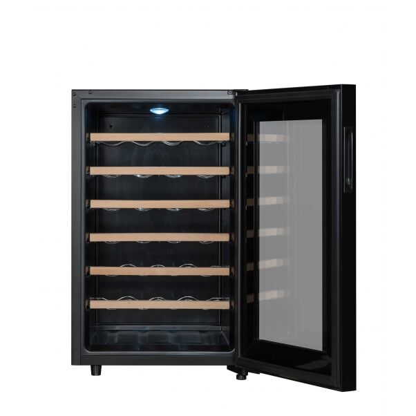 Количество зон одна Температурный режим +11..+18 °C (для красных вин) Количество бутылок 28 шт. Условие эксплуатации +16..+32 °C Возможность встроить нет Хладагент гибридное (R600a и Пельтье) Охлаждение статическое Вид охлаждения термоэлектрический Дверь в черной раме, стекло с защитой от УФ Полки 6 шт., металлический с деревянной накладкой с лицевой стороны Подсветка есть, LED Объем 70 л. Внутренняя влажность 30-60 % (ванночкой с водой) Потребляемая мощность 100 Вт Энергопотребление в сутки 0,488 кВт Энергетический класс G (по таблице классов 2021г.) Номинальное напряжение 220 В, 50 Гц Корпус черный металлический Разморозка автоматическая Угольный фильтр нет Зимний режим нет Перевеска двери нет Замок нет Управление сенсорное Уровень шума 26 дБ Размеры (ШхГхВ) 450х528х735 мм Масса (без упк./в упк.) 25/27 кг Размер в упаковке (ШхГхВ) 495х570х770 мм