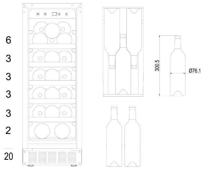 • Емкость винного шкафа (в бутылках): 20