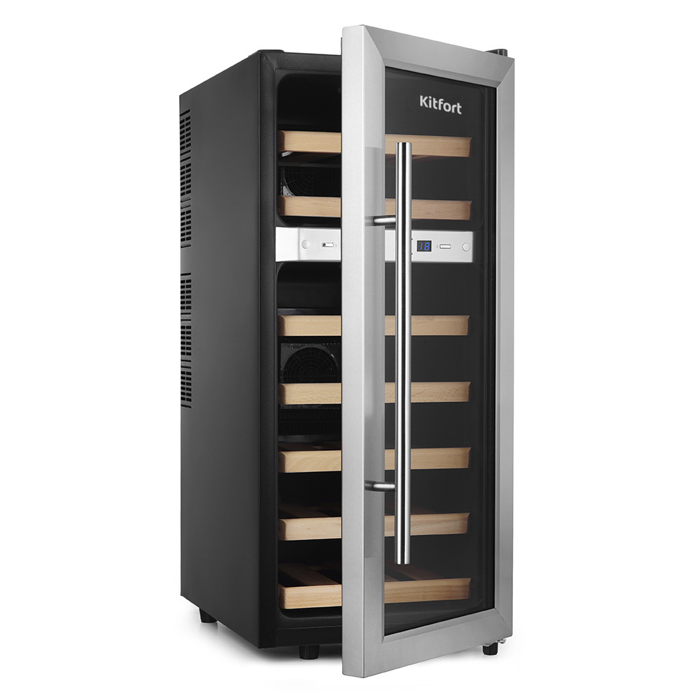 Вместимость: 21 бутылка: Климатические зоны: 2: Количество полок: 7: Материал полок: дерево: Мощность: 140 Вт: Общий внутренний объём камер: 60 л: Тип: термоэлектрический: Максимальная разница температур: 18 °С: Климатический класс: SN/N: Размер устройства: 340 × 510 × 820 мм: Вес нетто: 20,5 кг;;;