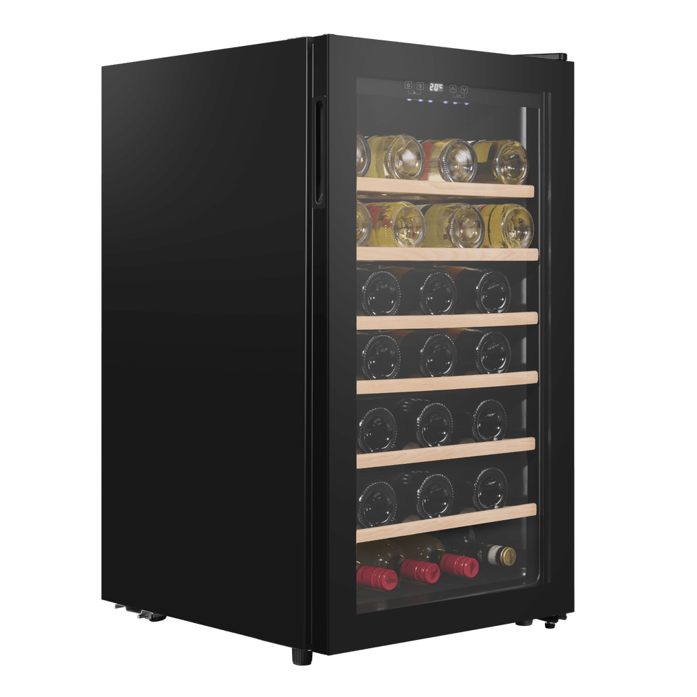 Полезный объём, л 118: Макс. кол-во бутылок, шт. 40: Индикация открытой двери Нет: Термостат Электронный: Индикация температуры Да: Индикация включения Да: Диапазон температуры, °C 5-20: Вентилятор для распределения температуры Да: Звуковой сигнал отключения питания Нет: Звуковой сигнал повышения температуры Нет: Тип управления Сенсорное: Количество компрессоров 1: Энергопотребление, кВтч/год 142: Материал корпуса Металл: Количество камер 1: Освещение холодильной камеры Да: Тип освещения Светодиодное: Тип компрессора Стандартный: Тип охлаждения Компрессорный: Материал полок Бук: Количество полок 6: Внешнее покрытие двери Стекло: Хладагент R600a: Климатический класс SN/N/ST: Ширина, мм 480: Глубина, мм 575: Высота, мм 860: Цвет Черный: Вес товара без упаковки (нетто), кг 30,52: Перенавешиваемая дверь Да: Страна Китай;;