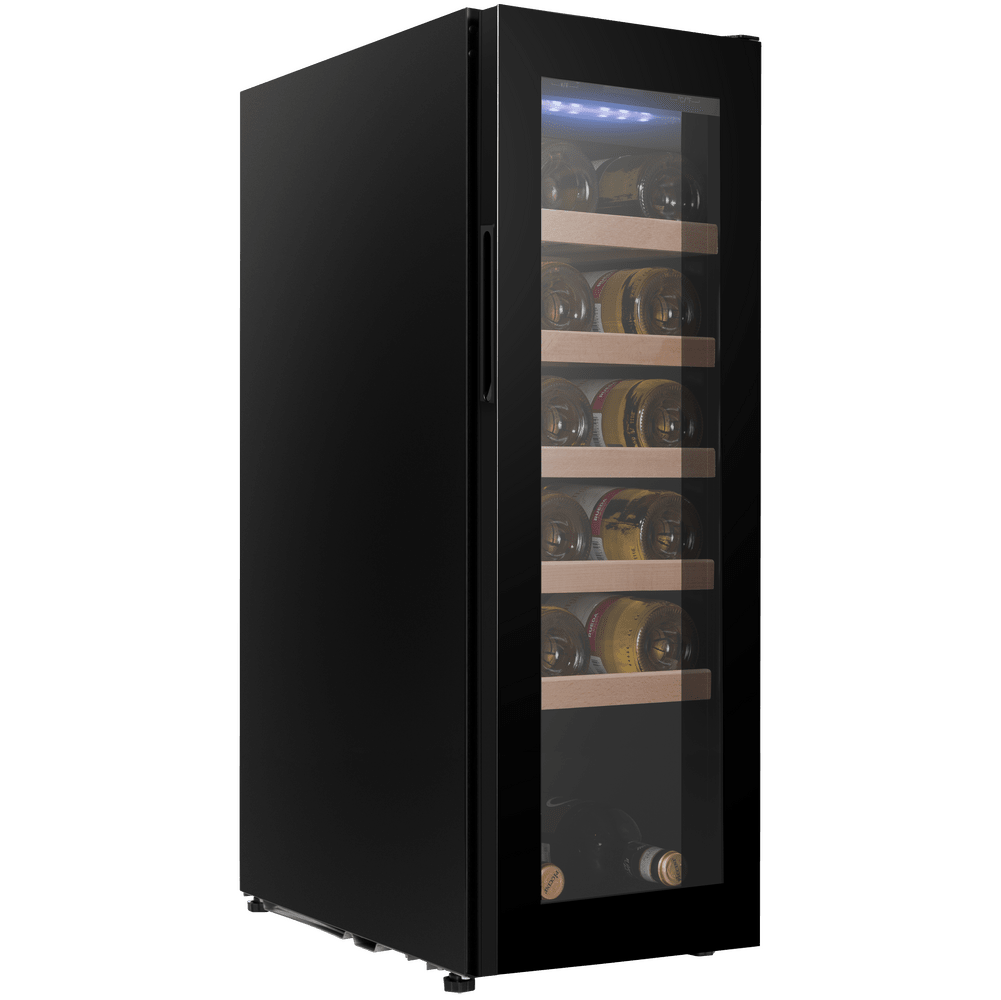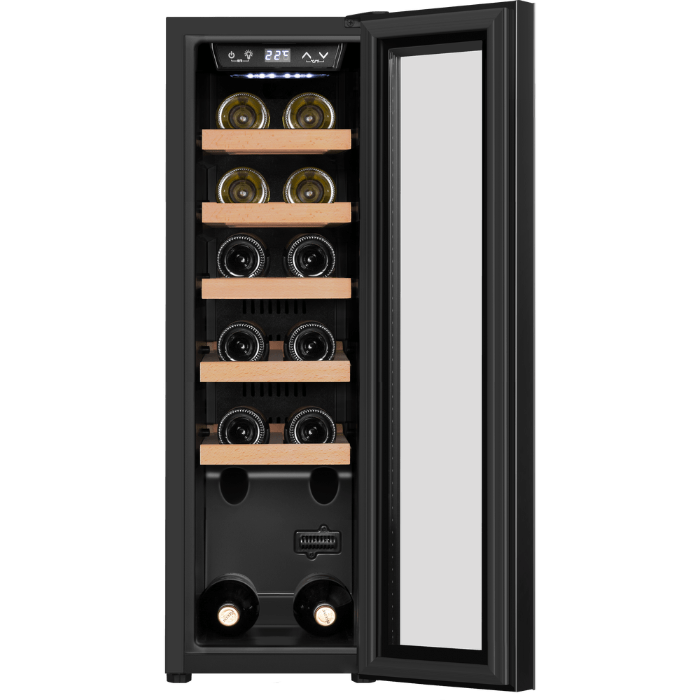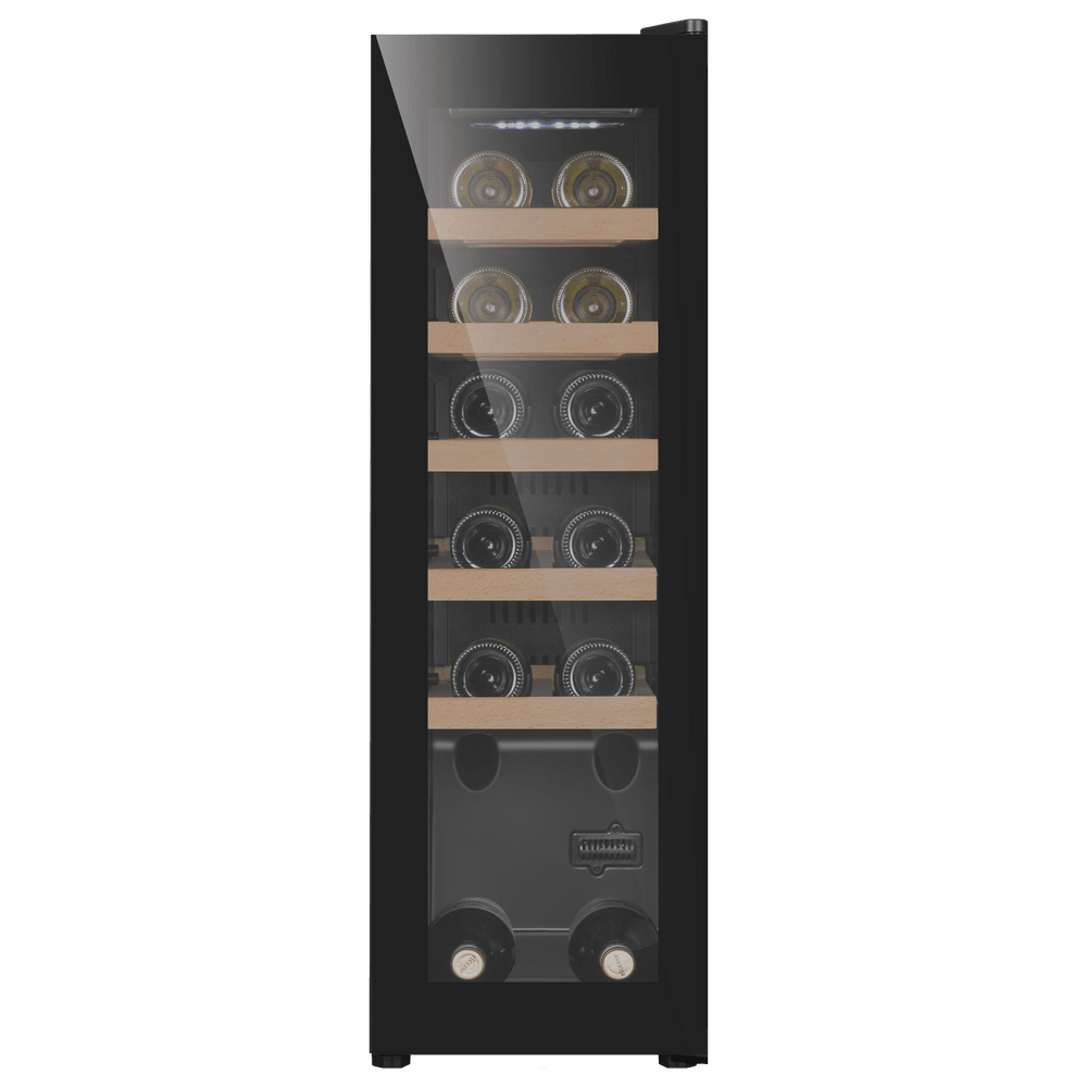 Тип установки/монтажа Отдельностоящий: Полезный объём, л 45: Макс. кол-во бутылок, шт. 12: Индикация открытой двери Нет: Термостат Электронный: Индикация температуры Да: Индикация включения Да: Диапазон температуры, °C 5-20°C: Вентилятор для распределения температуры Да: Звуковой сигнал отключения питания Нет: Звуковой сигнал повышения температуры Нет: Тип управления Сенсорное: Количество компрессоров 1: Энергопотребление, кВтч/год 133: Материал корпуса Металл: Количество камер 1: Освещение холодильной камеры Да: Тип освещения Светодиодное: Тип компрессора Стандартный: Тип охлаждения Компрессорный: Материал полок Бук: Количество полок 5: Внешнее покрытие двери Стекло: Хладагент R600a: Климатический класс SN/N/ST: Ширина, мм 270: Глубина, мм 490: Высота, мм 840: Цвет Черный: Вес товара без упаковки (нетто), кг 21,84: Перенавешиваемая дверь Да: Страна Китай;;