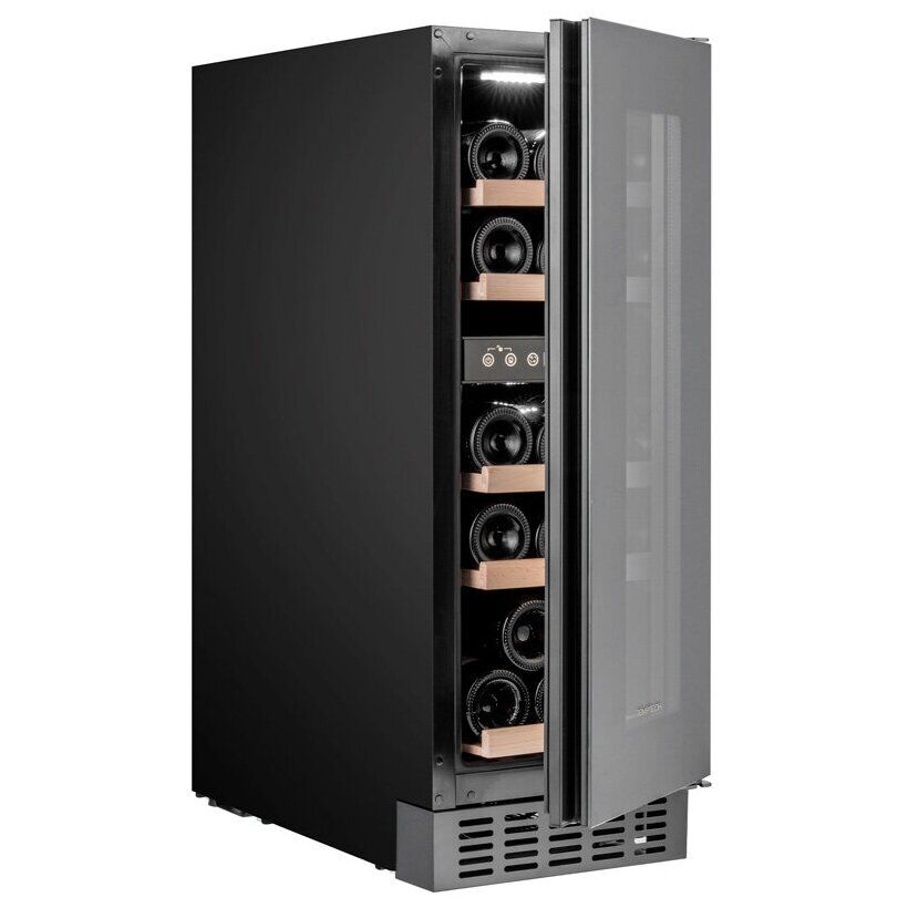 Общие данные:: Размеры:: высота: 81,3 см: ширина: 29,5 см: глубина: 57 см: Объем: 58 л: Максимальное количество бутылок: 17: Тип управления: электронный: Климатический класс: N (от +16°C до +32°C): Класс энергопотребления: F: Годовое потребление энергии: 93 кВтч: Цвет корпуса: Чёрный: Цвет дверцы: Чёрный: Количество температурных зон: 2: Диапазон температур: 5-12, 12-20°C: Тип системы охлаждения: компрессорный: Винное отделение:: Полки: 5: Подсветка (белая): Дополнительная информация:: Возможность встраивания: Перенавешиваемая дверь: УФ-фильтр: Хладагент: R600a: Уровень шума (дБ): 39: Высота дверцы (мм): 715;;;;