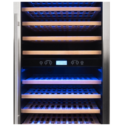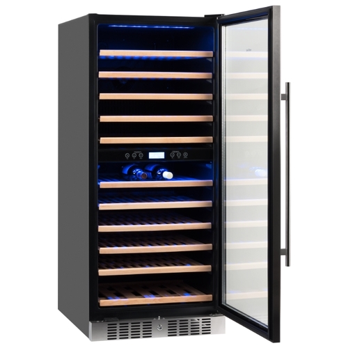- Особенности: возможность встраивания, полки из бука, окантовка стекла из нержавеющей стали
