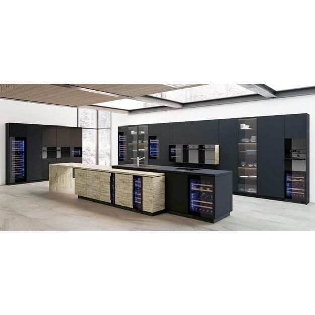 Общие характеристики : Тип : Двухтемпературный : Расположение : Встраиваемый : Высота (см) : 82.5 : Ширина (см) : 59.5 : Глубина (см) : 58.1 : Габариты, ВхШхГ (см) : 82.5х59.5х58.1 : Габариты ниши для встраивания, ВхШхГ (см) : 83х60х60 : Тип охлаждения : Компрессорное : Количество камер : 1 : Количество температурных зон : 2 : Диапазон установки температуры (°C) : 5-20 : Диапазон установки температуры в верхней зоне (°C) : 5-20 : Диапазон установки температуры в нижней зоне (°C) : 5-20 : Вместимость : Вместимость (бутылки 0.75 л) : 46 : Общий объем (л) : 133 : Дизайн и конструкция : Цвет : Черное стекло : Количество дверей : 1 : Дверной упор : Слева : Дверь : Со стеклопакетом : В черной рамке под стеклом : Ручка : Накладная : Доводчик двери : Да : Количество стекол дверцы : 3 : Защита от УФ-излучения / тонировка : Да : Управление : Управление : Электронное : Дисплей : Цифровой : Функциональные возможности : Внутреннее освещение : Светодиодное (LED) : Характеристика полок : Общее количество полок : 6 : Материа