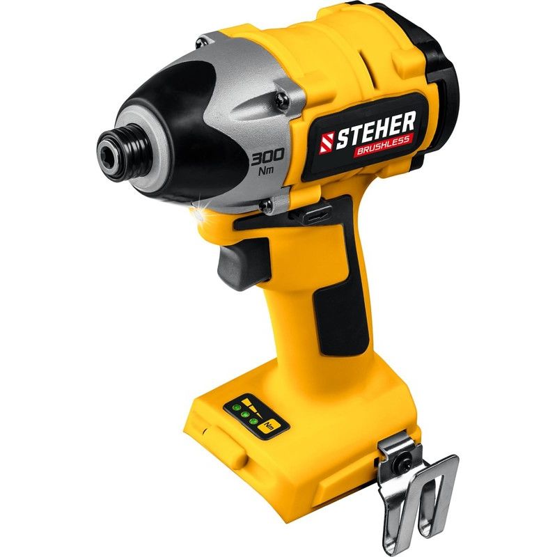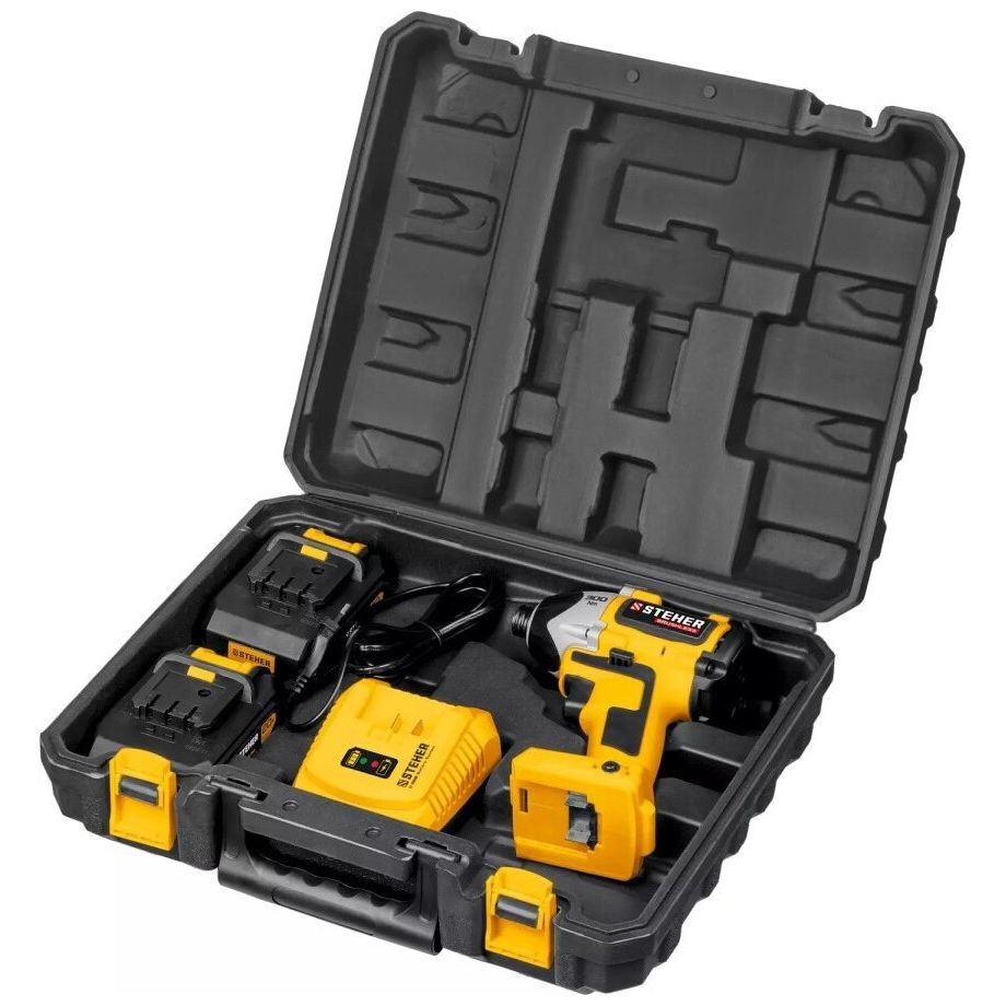 Общие характеристики; Тип инструмента; винтоверт; Тип патрона; под биты; Количество скоростей работы; 3; Питание; от аккумулятора; Макс. количество ударов в минуту; 3300 уд/мин; Макс. число оборотов холостого хода; 2300 об/мин; Максимальный крутящий момент; 300 Н·м; Макс. диаметр шурупов; 16 мм; Функции и возможности; Функции; реверс, тормоз двигателя, защита от перегрузок, регулировка частоты вращения; Особенности конструкции; лампа точечной подсветки; Аккумулятор; Количество аккумуляторов в комплекте; 2; Тип аккумулятора; Li-Ion; Емкость аккумулятора; 2 А·ч; Напряжение аккумулятора; 20 В; Зарядное устройство; на 1 аккумулятор; Особенности и габариты; Бесщеточный двигатель; есть; Упаковка; кейс; Размеры (ДхВxШ); 310x375x115 мм; Вес; 1.4 кг